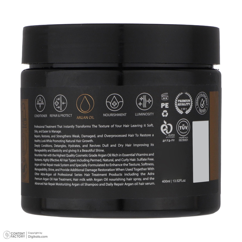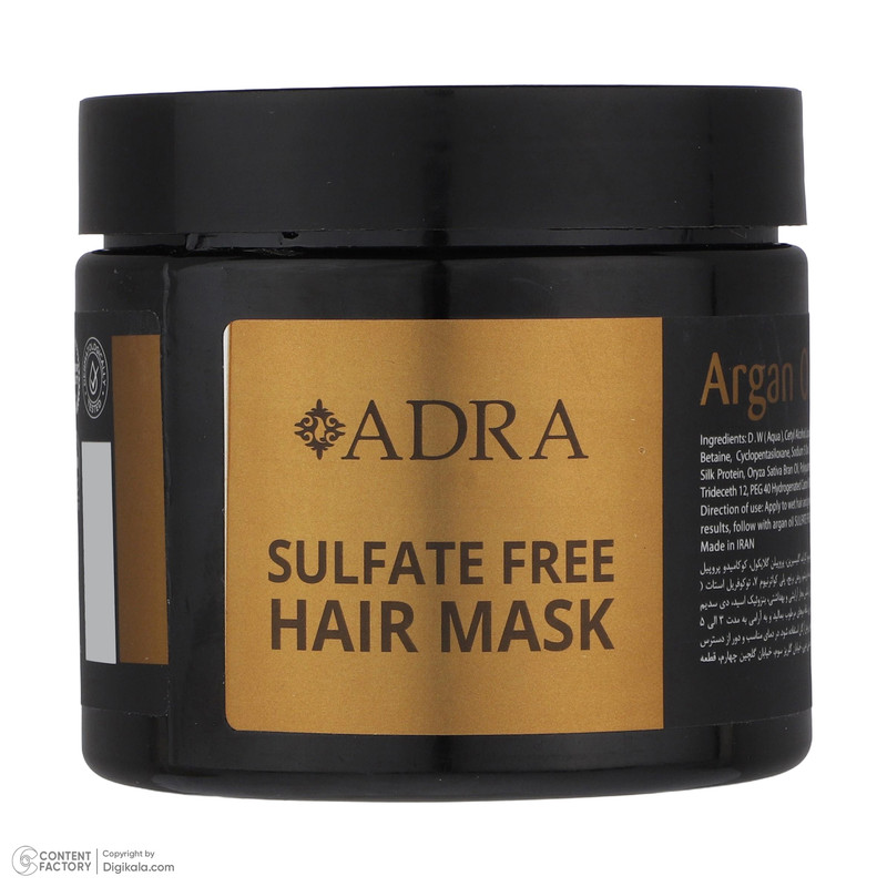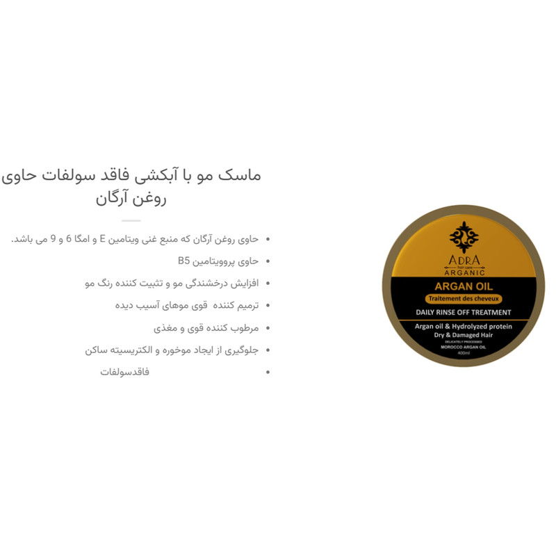ماسک مو آدرا مدل آرگان فاقد سولفات مناسب مو خشک و آسیب دیده حجم 400 میلی لیتر